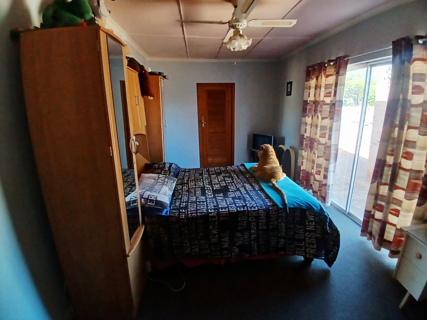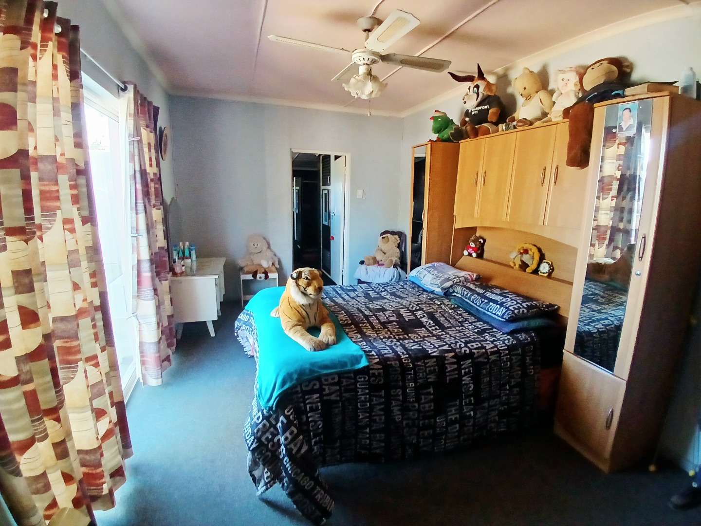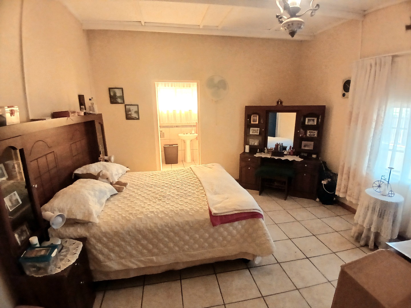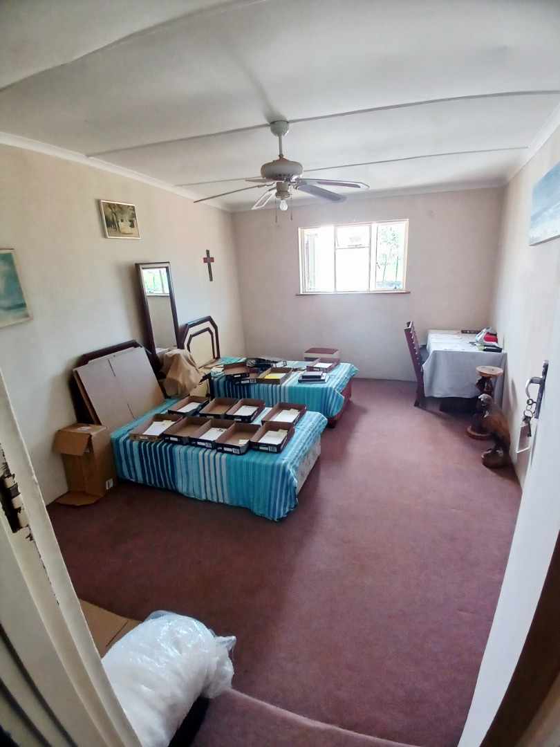 The interior boasts two spacious lounges and a dedicated dining room, offering ample space for relaxation and entertaining. The open-plan living and kitchen areas feature durable tiled flooring and a rustic aesthetic, including a wooden slatted ceiling and a large brick braai/fireplace, perfect for South African gatherings. While some elements present a dated charm, they also provide a canvas for modern updates and personal customisation.